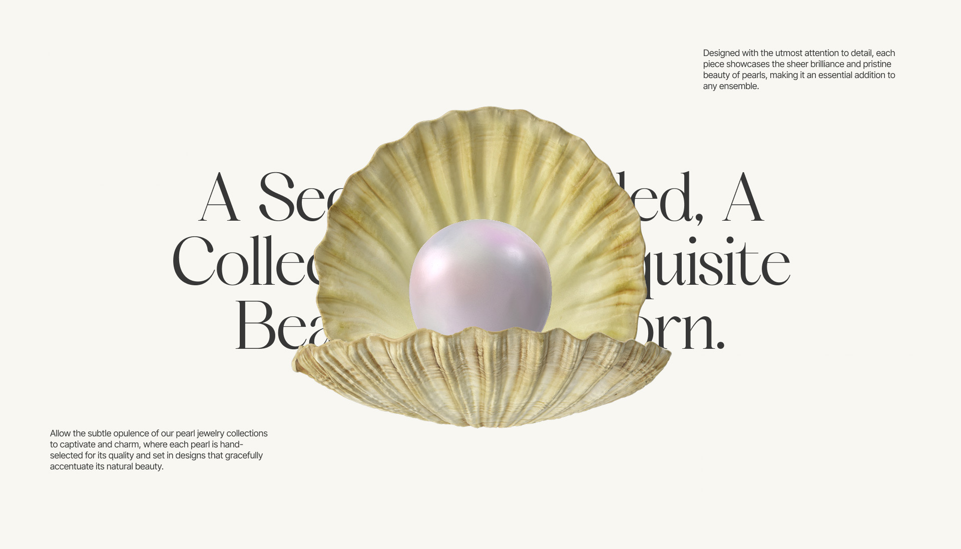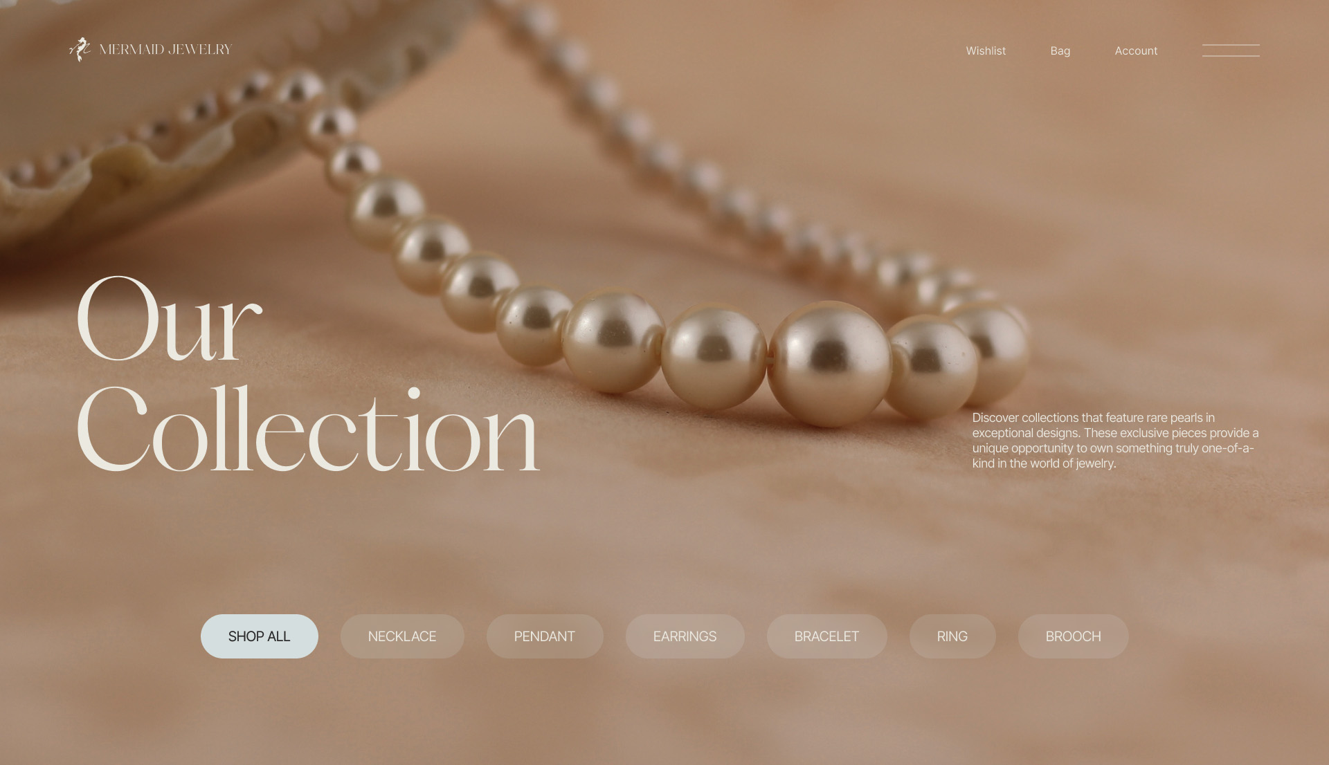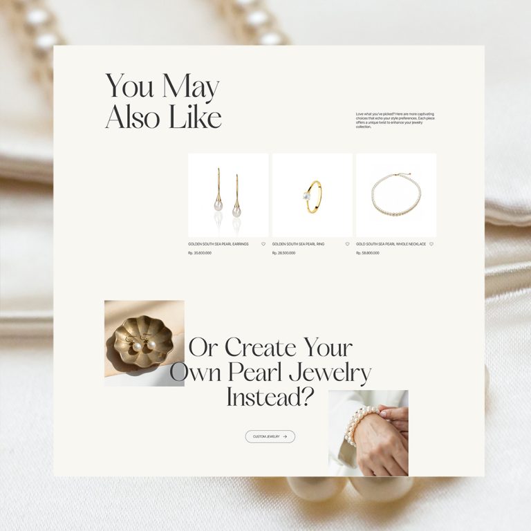 The hues and palettes inspired by the stream of a wave, the sand’s warmth, and the pearl’s purity are aimed to make the visitors dive into the idea of the ocean’s beauty, where the pearl lies deep down inside. As we shape this jewelry e-commerce website, we aim to deliver an informative catalog that beautifully highlights the unique stories behind each piece,